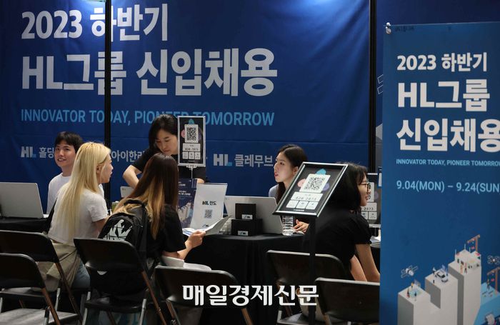 지난해 9월 11일 서울 서대문구 이화여자대학교에서 열린 ‘이화 잡 페어’를 찾은 취업준비생들이 기업 부스에서 상담을 받고 있다. [한주형 기자]