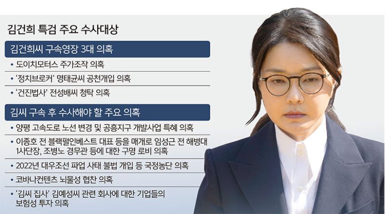 윤석열 전 대통령의 부인 김건희씨를 구속한 김건희 특별검사팀(특검 민중기)은 13일 곧바로 관저 이전 특혜·코바나컨텐츠 협찬·건진법사 청탁 등 여러 의혹에 연루된 인테리어업체 21그램을 압수수색했다. 특검은 최장 20일인 피의자 구속기간 동안 김씨와 관련한 남은 의혹 수사에도 속도를 낼 방침이다.