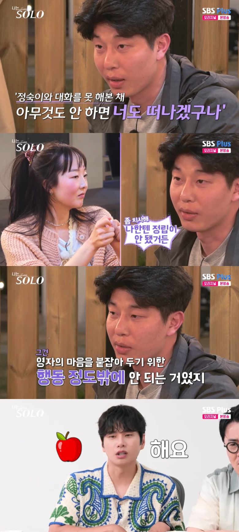 영수는 "하는 너고, 하나는 정숙이다. 나는 두 편인데 한 편이 없으니까 스트레스를 받는 거다"라고 전했다. 영자는 "근데 그렇게 하다가 두 켠 모두 떠날 수 있는 거 아니냐. 그거는 상관없냐"라고 말하자, 영수는 "상관이 없는 게 아니라. 내가 정숙이와 대화를 못 해본 채 아무것도 하지 않는다면 너도 떠나겠구나. 그래서 내가 너한테 어필을 한다면 치사하다고 생각했다"라고 털어놨다.