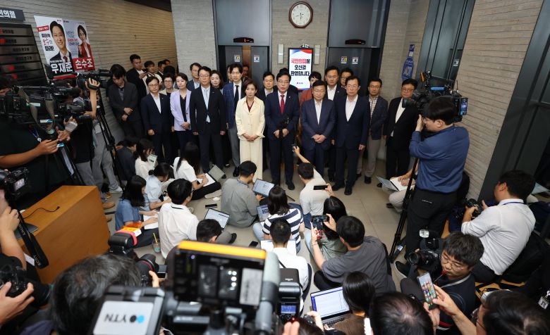 국민의힘은 14일 경기 고양시에서 개최될 예정이었던 수도권·강원·제주 합동 현장 연설회를 취소하고 온라인 연설로 대체하기로 했다. 국민의힘은 “수도권 호우 피해 때문”이라고 했지만 당 안팎에선 특검 수사와 무관하지 않을 것이라는 말이 나왔다.