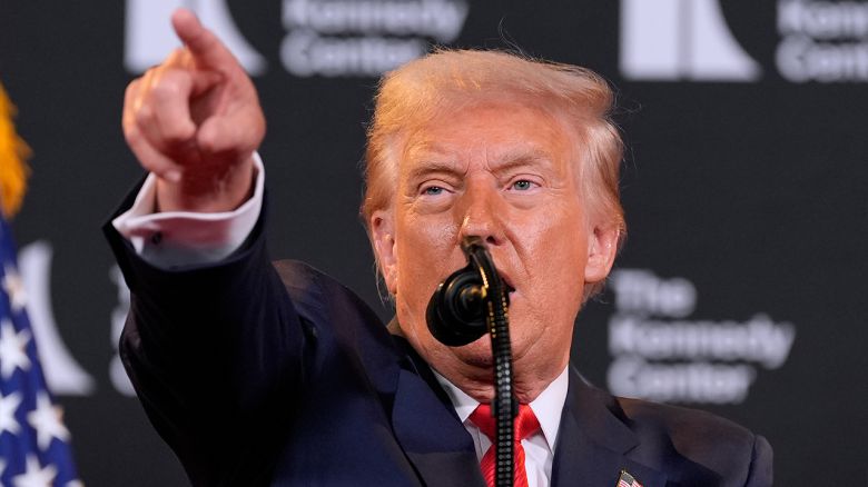 ▲ 도널드 트럼프 미국 대통령이 13일(현지시간) 워싱턴DC의 대표 공연장인 케네디센터에서 발언하고 있다.