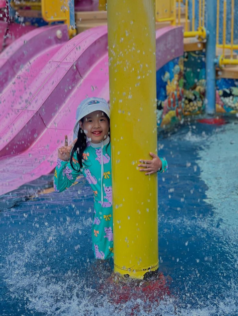 로아는 알록달록한 래시가드와 원피스를 입고 해맑은 표정을 짓거나, 튜브 위에서 여유를 즐기는 모습으로 눈길을 끌었다. 엄마를 쏙 빼닮은 또렷한 이목구비와 훌쩍 큰 키, 폭풍 성장한 모습이 인상적이다.