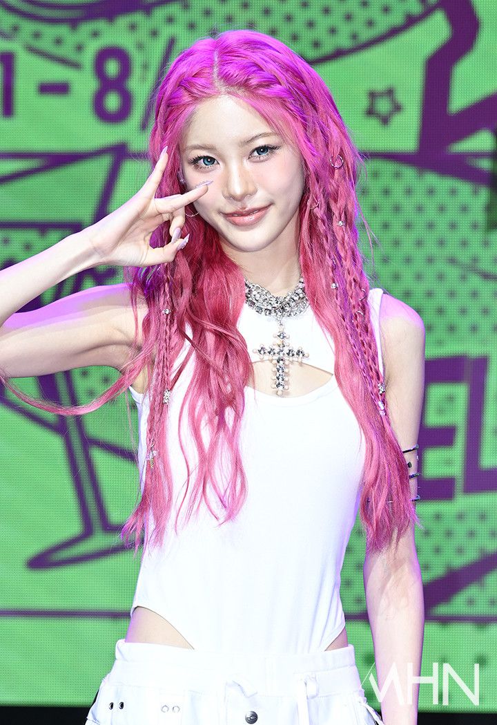 (MHN 이현지 기자) 힙합 아이돌 영파씨(YOUNG POSSE) 지아나가 14일 오후 서울 마포구 예스24 원더로크홀에서 진행된 네 번째 EP 'Growing Pain pt.1 : FREE' 발매 기념 쇼케이스에서 포토타임을 갖고 있다.
