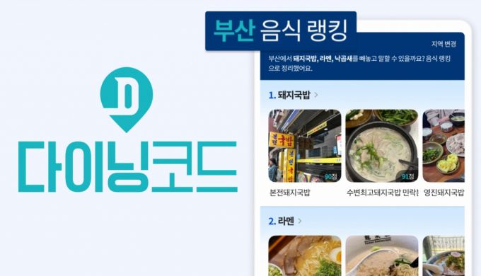 이번에 추가된 '지역 음식랭킹'은 특정 지역의 인기 음식을 순위로 보여준다. 이를테면 부산을 선택하면 돼지국밥, 라멘, 낙곱새 등 현지에서 자주 찾는 음식이 나온다. 음식별로 추천 식당이 정리돼 있어 해당 지역에 익숙하지 않은 사용자에게도 유용하다.