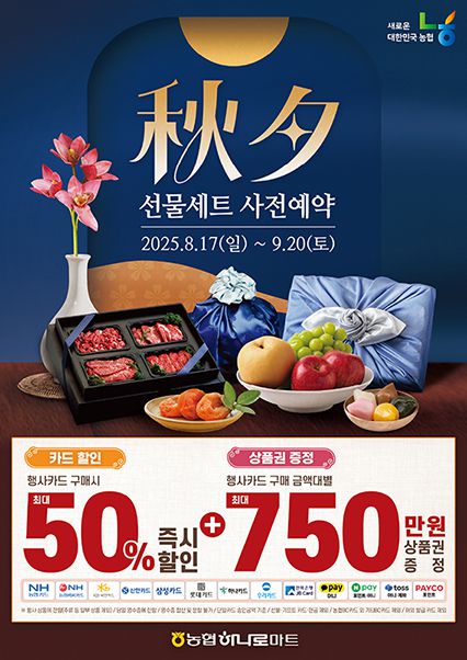 농협(회장 강호동) 경제지주(농업경제대표이사 박서홍)는 다가오는 추석 명절을 맞아 8월 17일부터 9월 20일까지 전국 농협하나로마트에서 추석 선물세트 사전예약 행사를 실시한다.