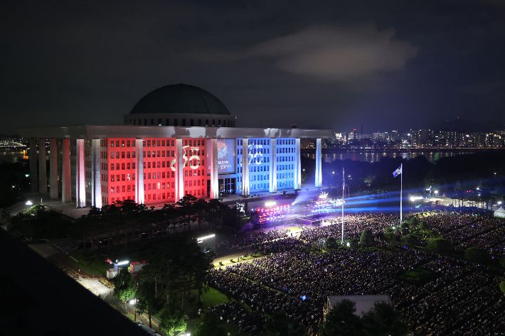 공연 중간에는 독립운동에 관한 영상이 국회 본청 건물에 비춰 상영됐고 독립 영웅들의 초상이 드론 쇼로 진행됐다.