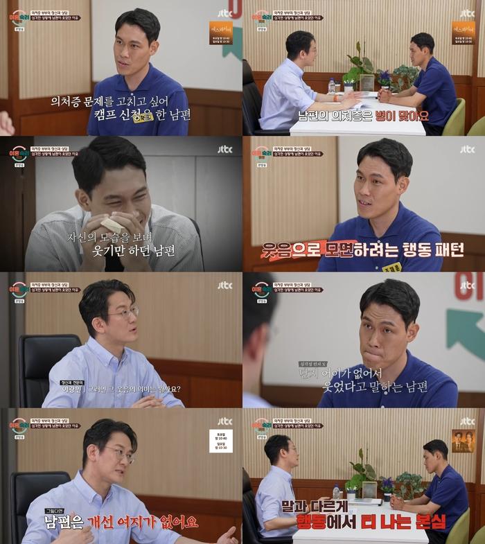 그런가 하면 이광민 전문의는 “의처증 이야기하면서 웃는 걸로 혼나지 않았냐”고 물었다. 남편이 “나도 내가 왜 그런지 모르겠다”고 하자 이광민 전문의는 “모면하려고 하는 거다. 거짓말로 혹은 웃음으로 순간적으로 상황을 모면하려고 한다”고 이야기했다.