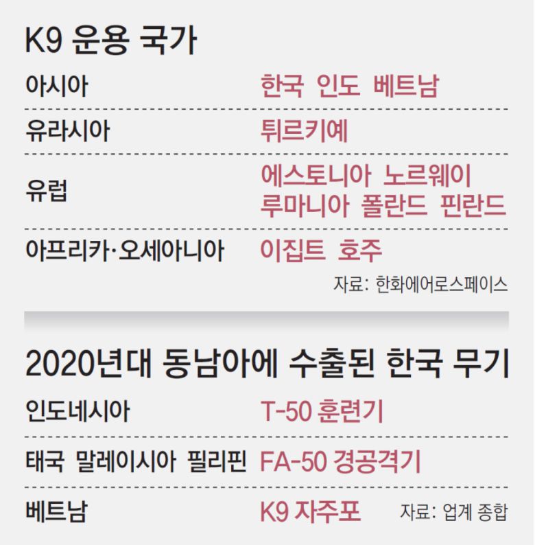 폴란드 수출을 계기로 최근 국내 방산업체들은 동유럽 시장에 집중해 왔다. 한화에어로스페이스는 폴란드에 지금까지 200문 이상의 K9을 공급했고, 아직도 인도해야 할 물량이 152문 남아 있다. 54문 수출 계약을 맺은 루마니아에는 아예 생산 공장을 설립해 현지 생산에 나설 예정이다.