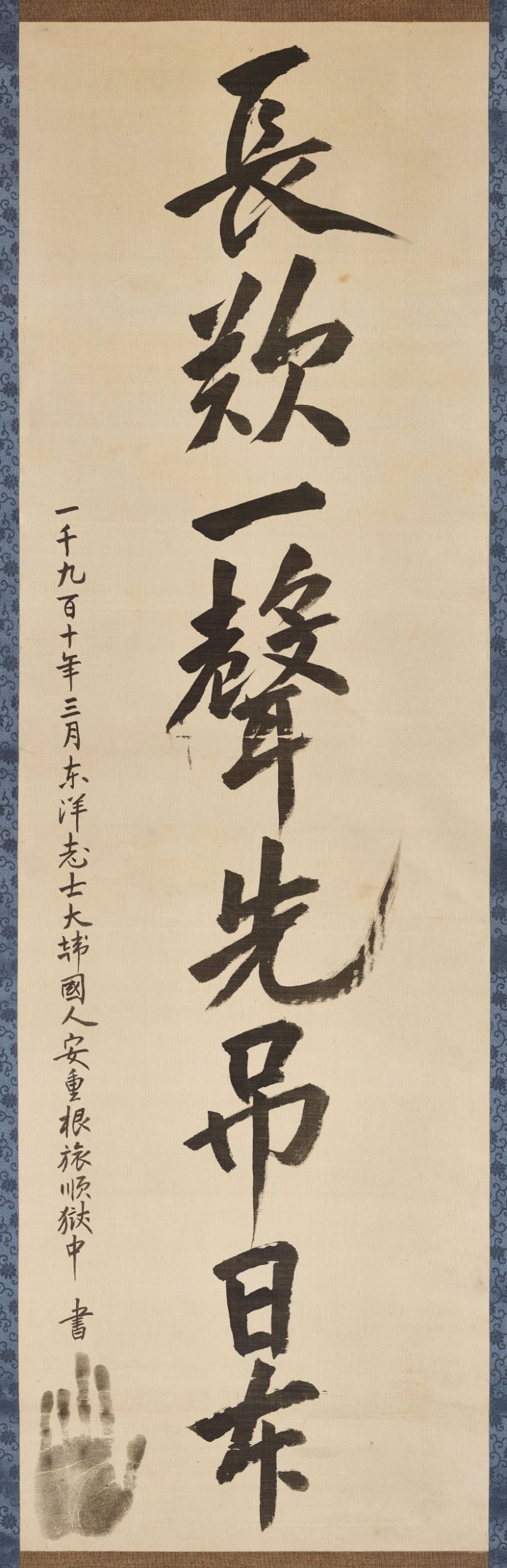 폭 41.5cm, 길이 135.5cm의 명주 천에 쓰인 이 유묵은 일제에 대한 저항을 그대로 드러냈다. 안 의사가 옥중에서 일본인에게 써준 글들은 주로 유교적 교훈이나 심경 등을 담았다.
