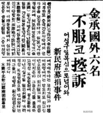 1930년 ‘신민부 김좌진의 부하’ 김성진(이명 김승국) 등 6명은 만주 지방에서 군자금을 모금하다가 강도죄로 기소, 1심에서 최고 10년형을 받았다. 사진은 원고들이 판결에 불복해 항소했다는 관련 조선일보 보도. 네이버 뉴스 라이브러리