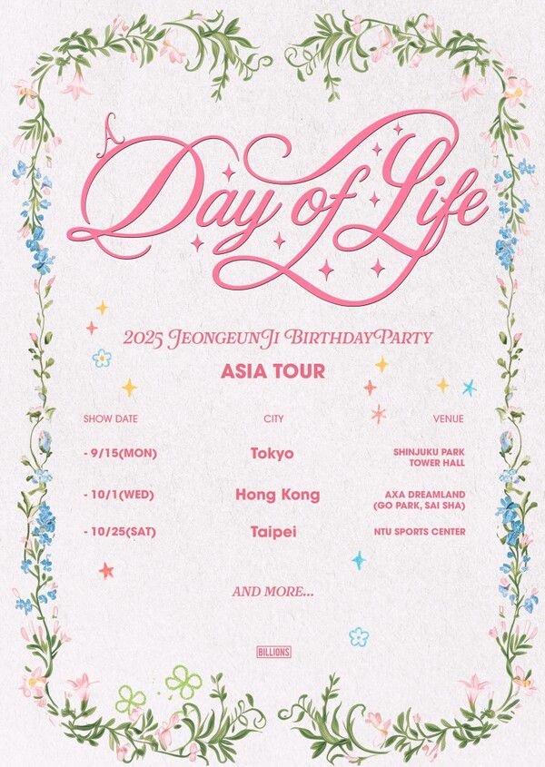 소속사 빌리언스에 따르면 정은지는 '2025 정은지 버스데이 파티 '어 데이 오브 라이프''라는 이름으로 9월부터 투어에 나선다.
