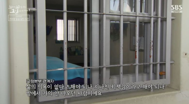 "삶의 의욕이 없다고 해야 되나, 지나친 죄책감이라고 해야 되나. 방에서 거의 안 나오던 사람이에요. '어떻게 죄를 짓고 나가서 밥을 먹고 운동하냐 그건 벌 받을 짓이다' 이런 식의 얘기를 했어요."