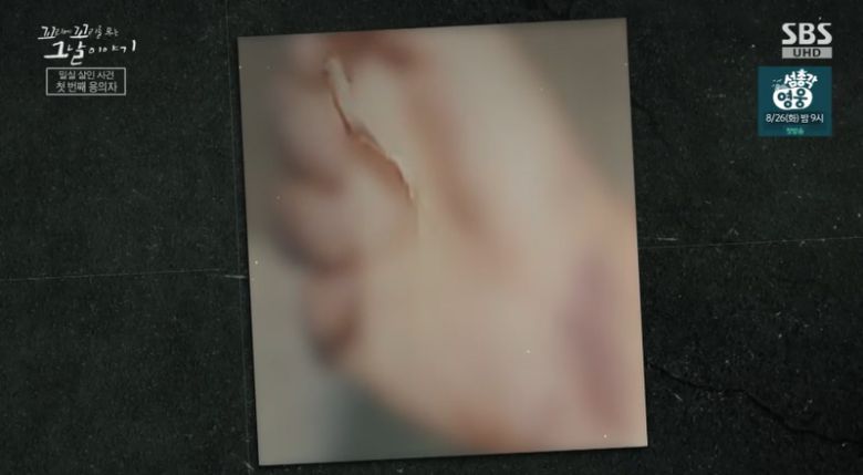 하지만, 30년 넘게 현장을 누빈 이문국 과장은 이대로 사건을 종결할 수 없다고 판단했어. 반드시 확인할 게 있었거든. 당시 장 씨의 손 사진을 보여줄게. 장 씨가 손에 움켜쥔 것이 있어.