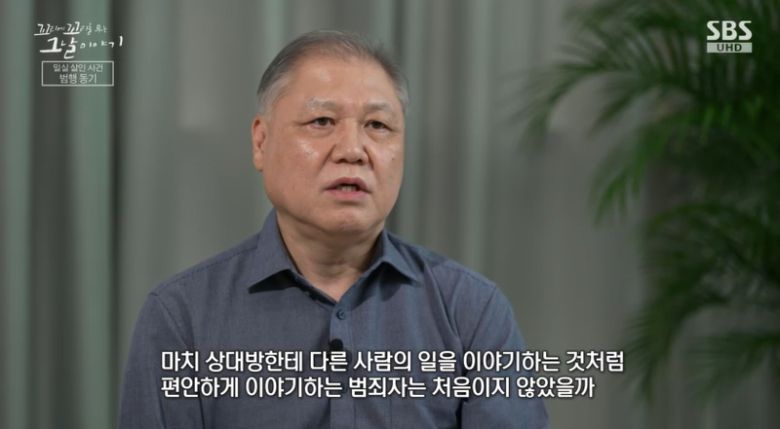 "아직도 강렬하게 기억에 남아있는 것은, 마치 '당연히 해야할 일을 시원하게 마무리했다'는 느낌. 범죄를 저지르고 나서 자랑하는 범죄자도 만났었고, 숨기려는 범죄자도 만나봤지만. 이렇게 당연히 해야할 일을 하고, 마치 상대방에게 다른 사람의 일을 이야기하는 것처럼 편안하게 이야기하는 범죄자를 처음이지 않았나."