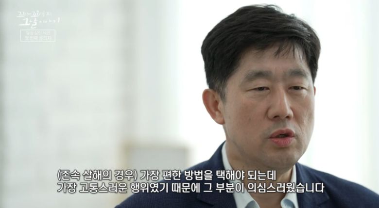 "엄마가 그렇게까지 하는 경우는 거의 없다고 봐야 합니다. 아이는 수면제만 먹어도 사망에 이르는 경우가 많아서 (존속 살해의 경우) 가장 편한 방법을 택해야 되는데 가장 고통스러운 행위였기 때문에 그 부분이 의심스러웠습니다."