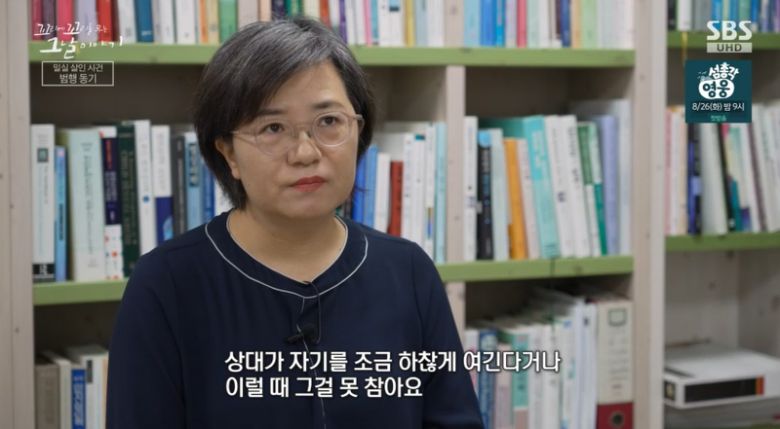 "나르시시스트의 살인 충동을 촉발하는 결정적인 요소는 굴욕감이에요. 자기가 우위에 있다고 생각하는 관계에서 어느 순간 자기가 우위에 서지 않았다거나 상대가 자기를 조금 하찮게 여긴다거나, 이럴 때 그걸 못 참아요."
