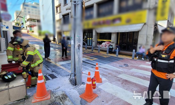[제주=뉴시스] 15일 오전 제주시 연동 소재 도로에서 덤프트럭이 전신주를 들이받는 사고가 발생해 소방당국과 경찰이 수습에 나서고 있다. (사진=제주소방안전본부 제공) 2025.08.15. photo@newsis.com |