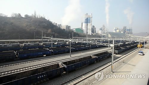 단양 도담역에 늘어선 화물열차 |