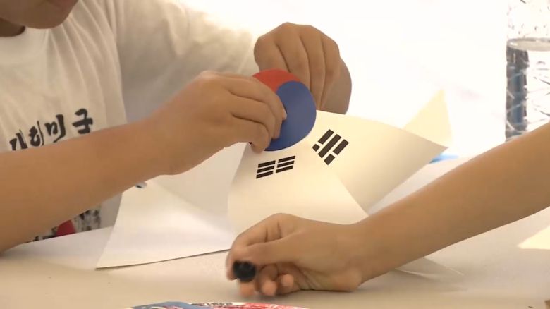네, 제 뒤로 거대한 태극기 보이시나요?