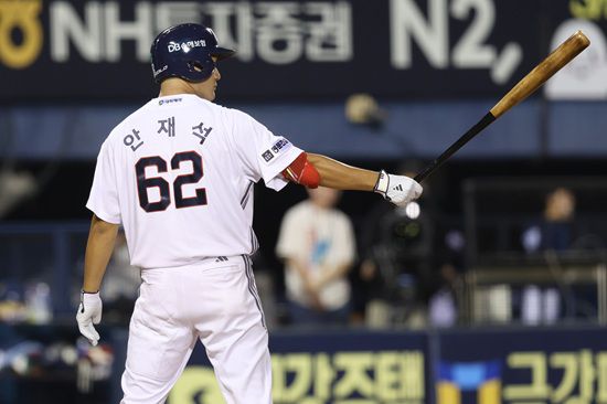 지난달 초 현역으로 제대한 안재석은 지난 12일 올 시즌 첫 1군 등록 뒤 당일 잠실 NC 다이노스전에 교체 출전해 1타수 무안타를 기록한 뒤 2루수 수비를 소화했다.
