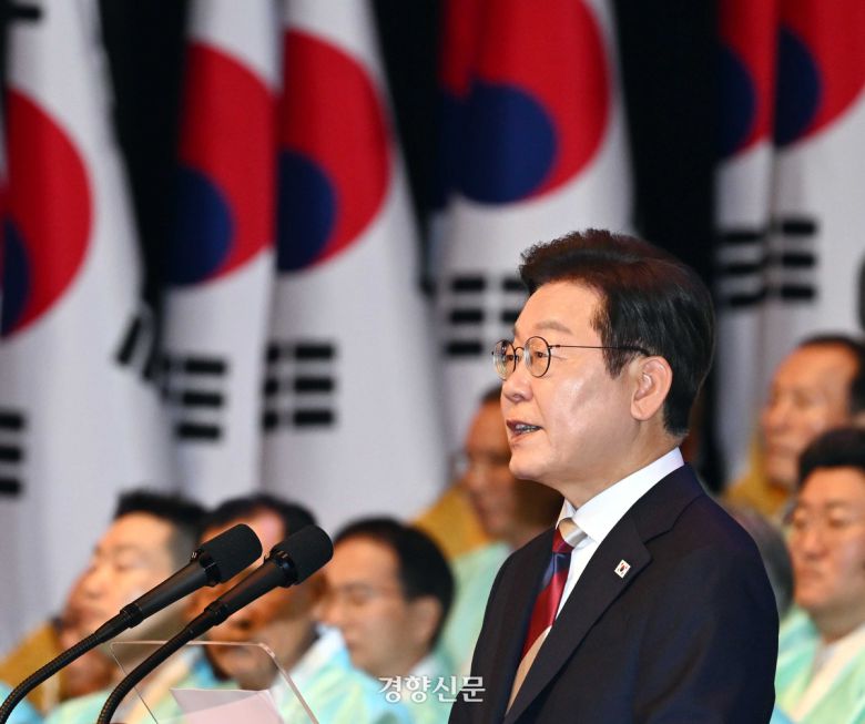 이재명 대통령이 15일 제80주년 광복절 경축사에서 “북측의 체제를 존중하고 어떠한 형태의 흡수 통일도 추구하지 않을 것이며 일체의 적대행위를 할 뜻도 없음을 분명히 밝힌다”고 말했다. 이 대통령은 그러면서 “실질적 긴장 완화와 신뢰 회복을 위한 조치를 일관되게 취해나갈 것”이라고 했다. 남북 간 긴장이 지속되는 상황에서 ‘장밋빛 제안’을 하기 보단 이재명 정부 대북정책의 원칙과 방향을 제시한 것이다.