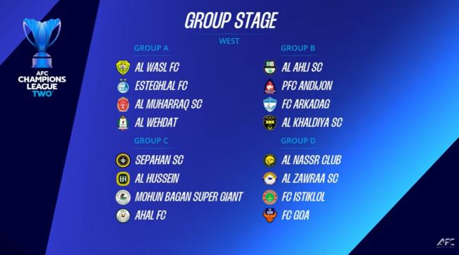 A조 : 알 와슬 FC(UAE), 에스테그랄 FC(이란), 알 무하라크 SC(바레인), 알 웨흐다트(요르단)
