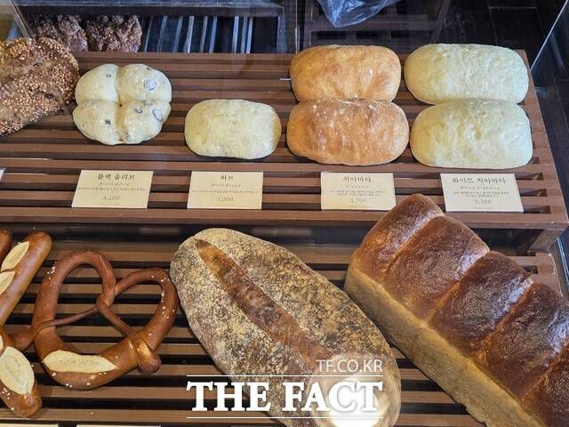최근 바게트, 치아바타, 포카치아, 깜빠뉴 등 식사빵에 대한 소비자 수요가 다양해지고 있다. 사진은 서울시 영등포구 여의도역 인근 식사빵 가게의 매대 모습 /우지수 기자 |