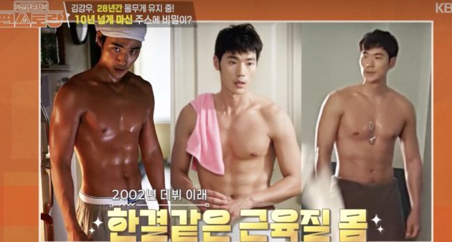 동안 비결을 묻자 김강우는 “고등학교 3학년 때 몸무게를 지금까지 유지하고 있다”고 답했다. 실제로 28년간 74~76kg을 유지 중이며, 현장에서 몸무게를 재자 75.6kg이 나왔다. 그는 “흰쌀밥과 흰빵만 먹지 않으면 된다”며 채소와 단백질 위주의 식단을 고수한다고 밝혔다.