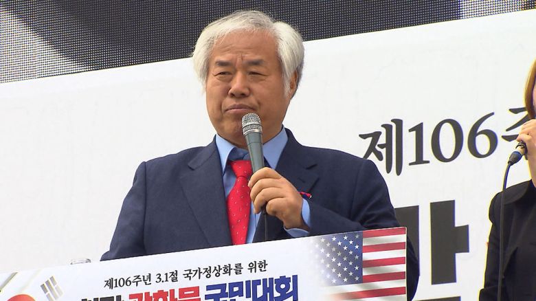 경찰이 서울서부지법 폭동 사태의 배후로 의심하는 전광훈 사랑제일교회 목사도 연단에 올랐습니다.
