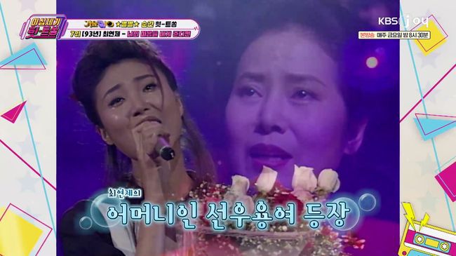 최연제의 ‘너의 마음을 내게 준다면(1993)’이 7위를 차지했다. 방송에서는 데뷔 후 1년 만에 첫 1위를 차지해 눈물 흘리며 노래 부르는 최연제와 모친 선우용여가 울컥한 표정을 짓는 모습이 교차로 비춰졌다.
