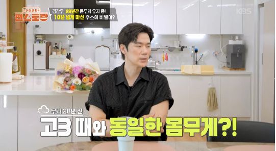 배우 김강우가 181cm·75kg의 고등학교 3학년 시절 몸무게를 28년째 유지하고 있는 비결을 공개했다.