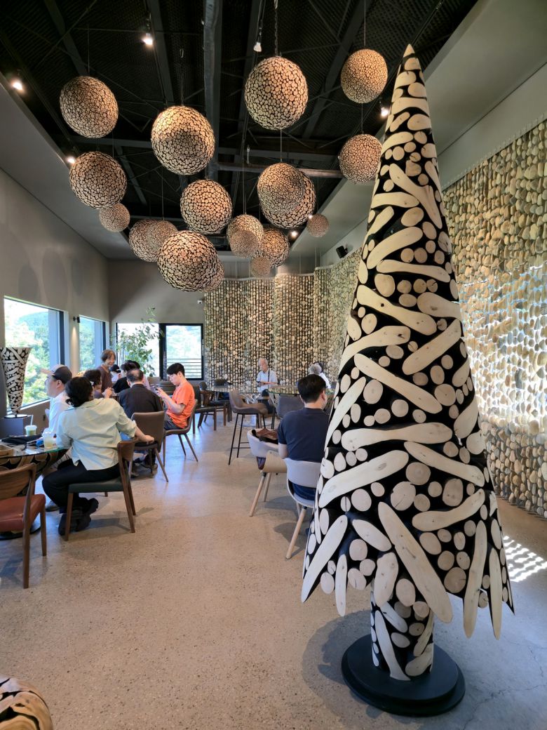 지평면 이재효 갤러리는 세계적인 조각가이자 설치 예술가인 이재효 작가의 작업실과 그가 직접 설계한 전시장, 갤러리, 카페가 함께 있는 공간이라 쉬어가며 한나절을 보내기 좋다. 갤러리 1층으로 들어서면 곶감을 꿰듯, 주먹만 한 돌덩이를 철사로 묶어 천장에 주렁주렁 매단 터널형 설치 작품을 만난다. 이재효 작가는 작품마다 제목이나 설명을 따로 만들지 않는다. 관람객의 상상력을 자극하기 위해서다. 무거운 돌덩어리들이 허공에 떠 있는 모습은 거대한 우주와 별들을 표현한 것 같다. 관람객이 작품 안으로 걸어 들어가면 한치 앞도 내다볼 수 없는 인간의 짧은 삶이 돌의 영원한 생명력과 극렬하게 대비되는 느낌이다.