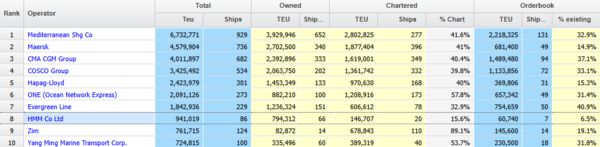하지만 아직 눈에 띄는 발주는 없다. 해운 컨설팅 기관 알파라이너의 추산치에 따르면 7월 28일 기준 HMM의 신조선 오더북은 6만TEU로 전체 선복량의 6.5%다. 같은 기간 1위 MSC는 32%(215만TEU), 7위 에버그린은 40.9%(75만TEU)의 오더북을 유지 중이다. 당장 상위 10위권 선사 중 선복량 대비 오더북이 10% 미만인 회사는 HMM이 유일하다.