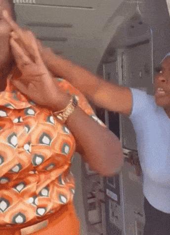 라고스에 도착 후 여성은 모든 승객이 내릴 때까지 기다렸다가 휴대전화를 끄라고 지시한 승무원에게 따지기 시작했다.