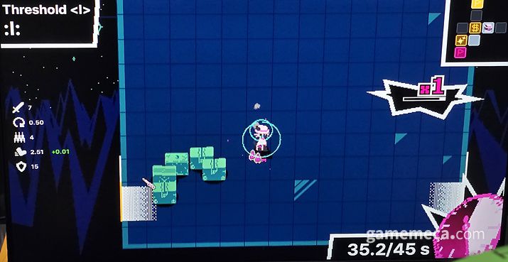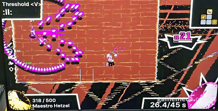 ▲ 수많은 탄막 피하고 때리는 '타임 스내쳐 핸디' (사진: 게임메카 촬영) |