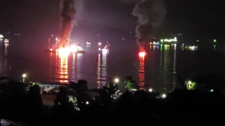 멀지 않은 해상에 있는 배도 불타고 있습니다.