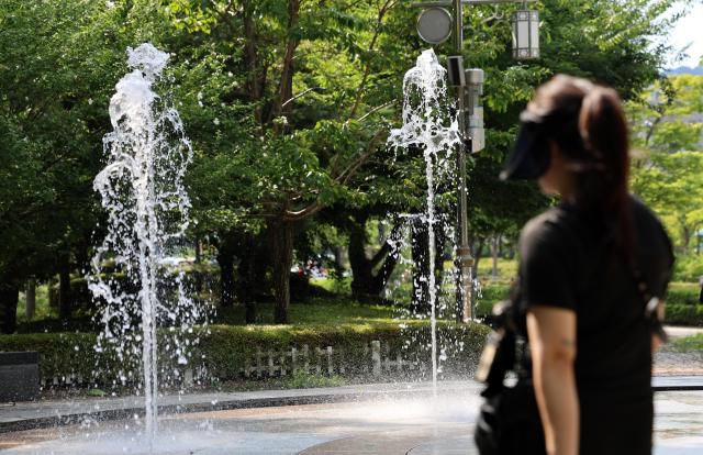 폭염 특보가 내려진 25일 전북 전주시 마전숲공원에서 분수가 작동하고 있다. [사진=연합뉴스] |