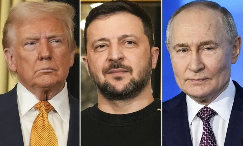 (왼쪽부터) 도널드 트럼프 미국 대통령과 볼로디미르 젤렌스키 우크라이나 대통령, 블라디미르 푸틴 러시아 대통령. AP연합뉴스 |