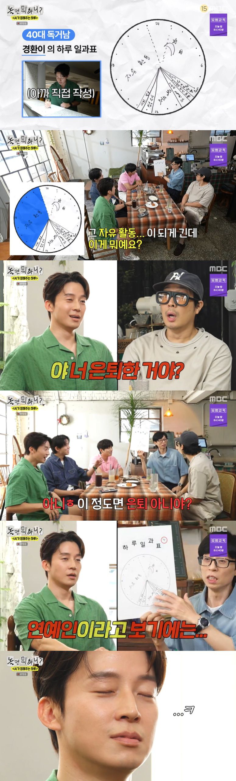 (엑스포츠뉴스 김보민 기자) 9시간 이상의 자유 활동이 포함된 허경환의 하루 일과표가 공개됐다.