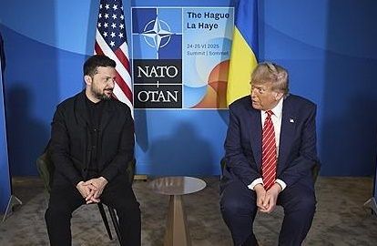 지난 6월25일 헤이그에서 만난 도널드 트럼프 미국 대통령과 볼로디미르 젤렌스키 우크라이나 대통령. EPA=연합뉴스 |