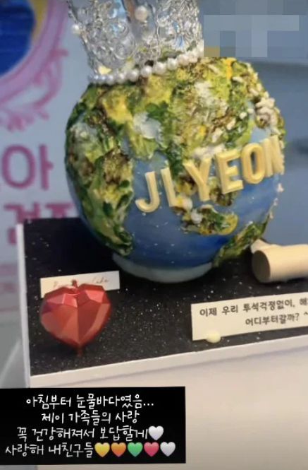 박지연은 16일 "아침부터 눈물바다였음… 제이 가족들의 사랑 꼭 건강해져서 보답할게"라는 글과 함께 파티 현장을 담은 영상을 공개했다.