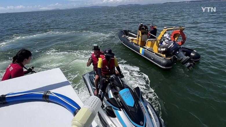 해경은 연안구조정을 파견해 사고 발생 16분 만에 해수욕장 안전관리요원과 합동으로 레저 보트에 타고 있던 40대 A 씨와 딸 등 2명을 구조했습니다.