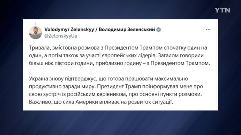 젤렌스키 대통령은 현지 시간 16일, 트럼프 대통령에게서 미·러 정상회담 결과를 전달받은 뒤 소셜미디어에 글을 올려 이같이 밝혔습니다.