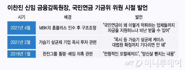이찬진 신임 금융감독원장, 국민연금 기금위 위원 시절 발언/그래픽=이지혜