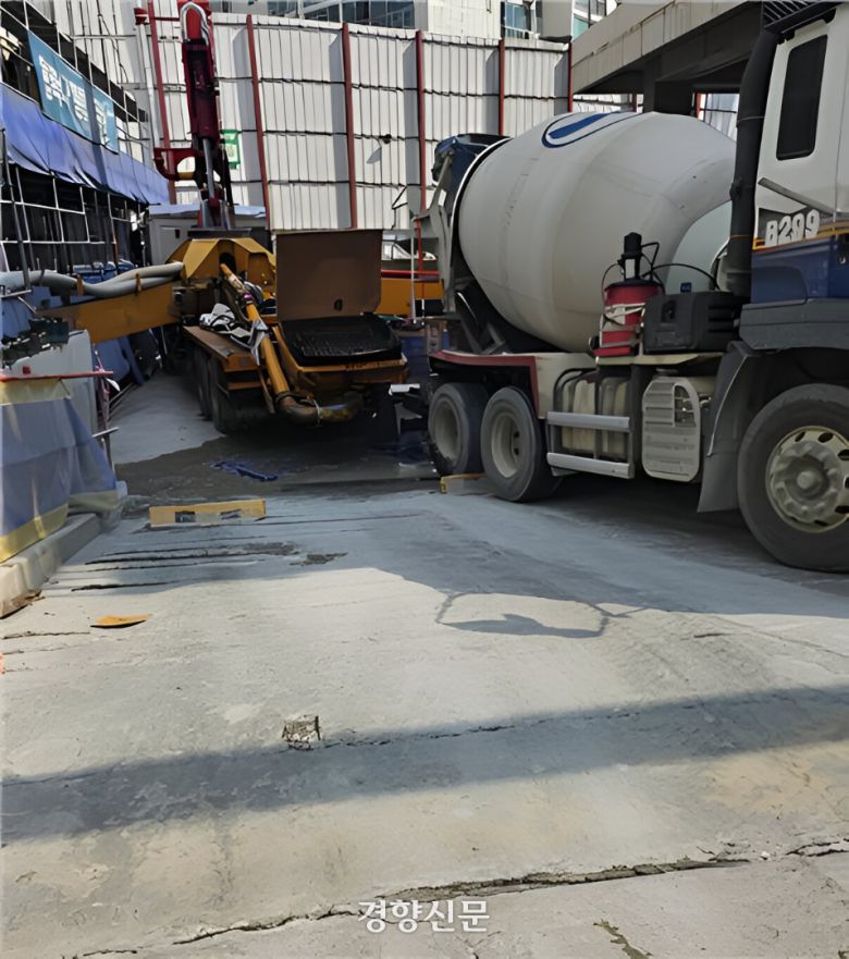 포스코이앤씨가 시공하는 서울 구로구 지식산업센터 건설 현장에서 레미콘 트럭이 뒤로 밀리는 산재 사고가 발생했다. 이 사고로 레미콘 트럭과 콘크리트 펌프카 사이에 끼인 이모씨는 왼쪽 다리를 절단했다. 이진호 리앤리파트너스 변호사 제공