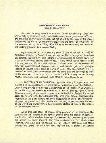 영문으로 작성된 이 글은 2008년 이후 수장고에 보관돼오다 최근 조사·연구를 거쳐 빛을 보게 됐다. 도지 아펜젤러가 글을 쓰고, 가족들이 1991년 회의를 거쳐 편집했다고 한다.