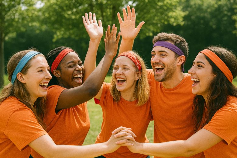 성인들이 신나게 야외 활동을 하는 모습. [챗GPT로 생성한 사진] |