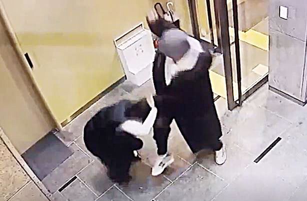 배현진 국민의힘 의원은 지난해 1월 25일 오후 5시쯤 서울 강남구 신사동의 건물 1층에서 10대 중학생 A군으로부터 돌덩이로 머리를 10여차례 가격당했다. 사진은 미성년자인 습격범이 배 의원을 습격하는 모습. 2024.1.25 배현진 의원실 제공