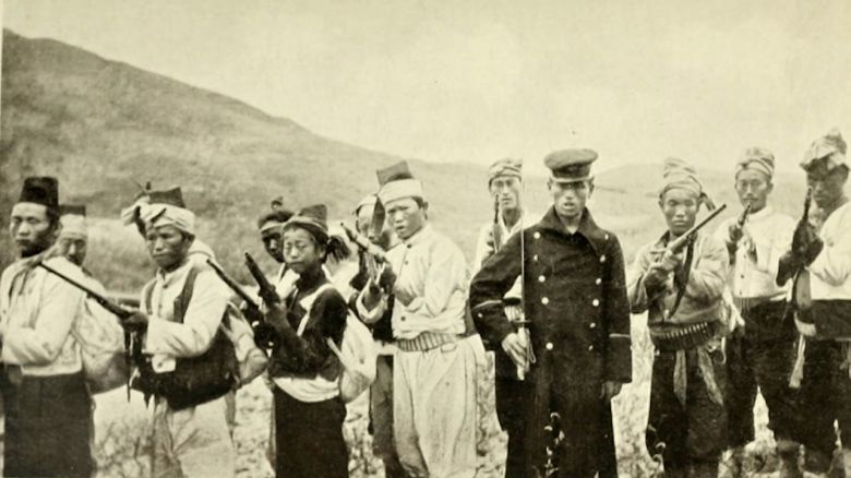 프레더릭 아서 매켄지가 촬영한 무명 의병 13인 위는 매켄지의 책에 실린 실제 사진, 아래는 색감을 입히는 작업을 진행한 결과물이다. |