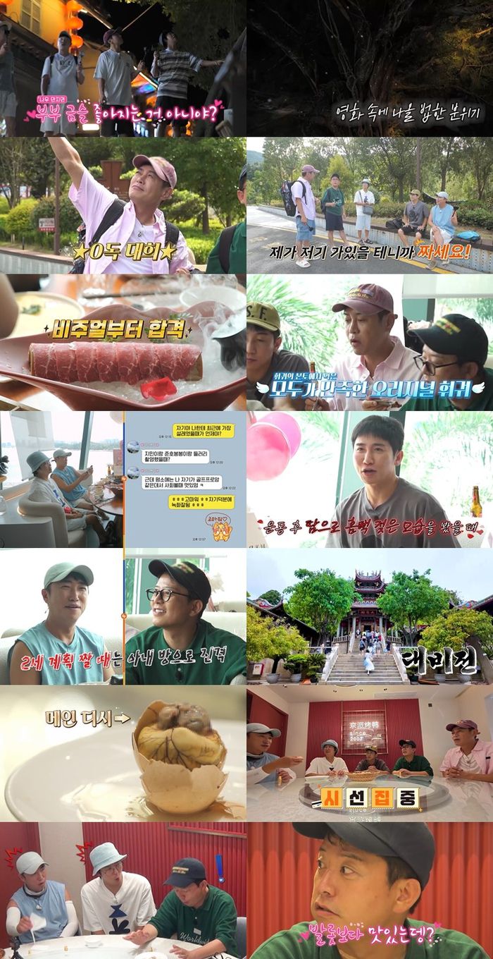 앞서 푸첸성의 ‘운수요 마을’을 방문했던 ‘독박즈’는 2일 차 저녁, 정통 중화요리 식당으로 갔다. 메뉴 주문 전, 이들은 식사비 내기 게임을 했고, 그 결과 김준호가 꼴찌를 했다. 그는 멤버들이 황금빛 고량주를 시키자 “비싸 보인다. 뚜껑 따지 마!”라며 예민해했다. 하지만 인터넷 검색 결과, 중국 본토인만큼 가격이 저렴한 것을 확인해 안도의 한숨을 내쉬었다.